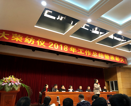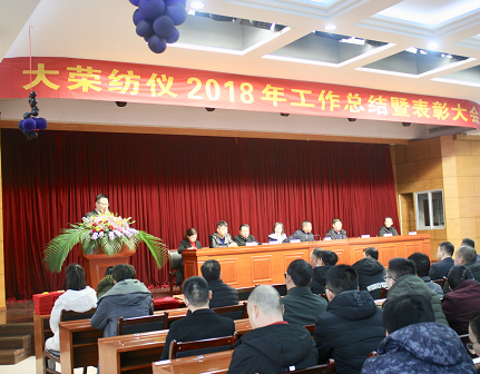 喜迎春日、艷陽(yáng)暖照。2019年1月25日上午八點(diǎn)半,溫州市大榮紡織儀器有限公司在大榮紡儀多媒體會(huì)議大廳里舉行了2018年工作總結(jié)暨表彰大會(huì)。董事長(zhǎng)吳昭彪首先做了開(kāi)講詞,并對(duì)2018年做了年度總結(jié),會(huì)上董事長(zhǎng)吳昭彪指出大榮紡儀會(huì)一如既往的拼搏和前進(jìn),對(duì)新的一年市場(chǎng)前景很是看好,也祝愿大榮紡儀銷(xiāo)售目標(biāo)能再創(chuàng)佳績(jī)!2018年大榮紡儀銷(xiāo)售完成額歷年最高,且在大環(huán)境如此動(dòng)蕩的影響下還能以如此優(yōu)異的成績(jī)贏得市場(chǎng)效益很是欣慰,表達(dá)了對(duì)公司各部門(mén)這一年付出的感謝。并對(duì)2019年公司的發(fā)展做了整體規(guī)劃,就2019年公司架構(gòu)的改革提出了議案以及新的目標(biāo)和發(fā)展方針。