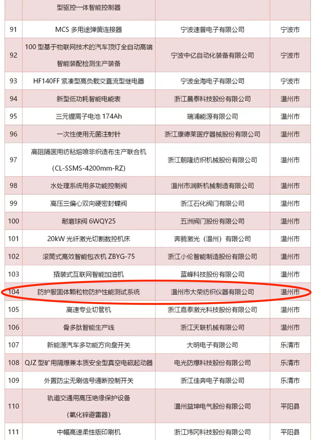 日前,浙江省經(jīng)濟和信息化廳公布2021年度“浙江制造精品”名單,大榮紡儀防護服固體顆粒物防護性能測試系統(tǒng)上榜!