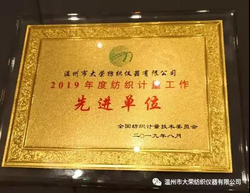 溫州市大榮紡織儀器有限公司被授予“2019年度紡織計量工作先進單位”。