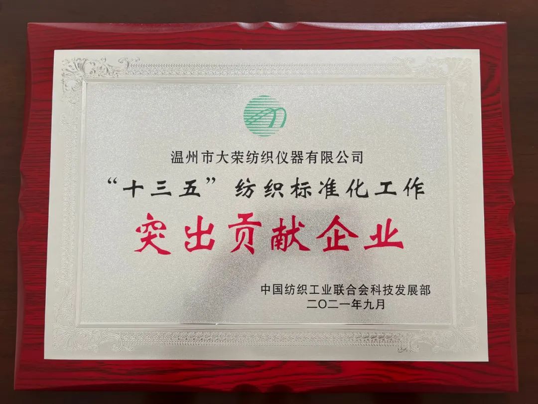 會(huì)議還表彰了“十三五”紡織標(biāo)準(zhǔn)先進(jìn)集體與個(gè)人,表彰“十三五”紡織標(biāo)準(zhǔn)與計(jì)量?jī)?yōu)秀論文獲得者,表彰中國(guó)紡聯(lián)團(tuán)標(biāo)2021年度先進(jìn)單位與個(gè)人,為中國(guó)紡聯(lián)標(biāo)準(zhǔn)化技術(shù)委員會(huì)新增委員頒發(fā)證書。大榮紡儀榮獲“十三五”紡織標(biāo)準(zhǔn)突出貢獻(xiàn)企業(yè)。