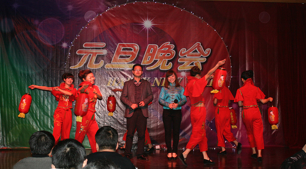 今年的晚會形式多樣,內(nèi)容豐富多彩。別看財務(wù)部五位女子平時溫柔嫻淑,但今年在晚會上表演的爵士舞動感熱烈、激情奔放,給觀眾留下了深刻的印象;生產(chǎn)部小品《包青天公審》延續(xù)了去年幽默搞笑的風格,并進行了創(chuàng)新;辦公室今年自創(chuàng)自演的三句半,貼近生活,和銷售部合作的雙簧《窮開心》,讓人耳目一新。副董事長周姐不愧多才多藝,每年晚會都得益于她的辛勤指導,今年她表演的古箏、笛子合奏《菊花臺》、薩克斯獨奏《北國之春》柔情似水,歌曲領(lǐng)唱《今夜無眠》,大氣磅礴!連平時很少見到的張工也被現(xiàn)場氣氛所感染,禁不住上臺高聲朗誦一首毛澤東詩詞《沁園春·雪》。各種各樣的節(jié)目層出不窮,一次次把晚會推向了高潮。